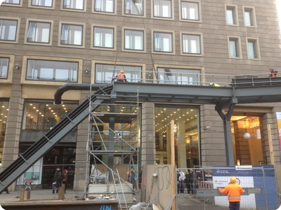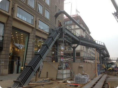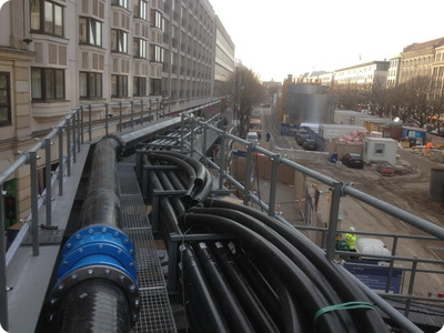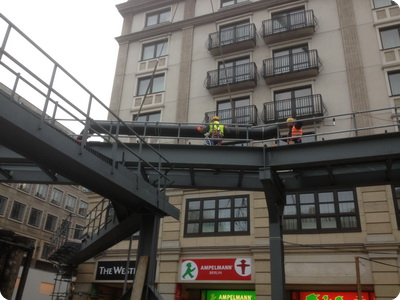 für ca. 2 Jahre auf eine provisorische Rohrbrücke in 6,40 m Höhe verlegt.