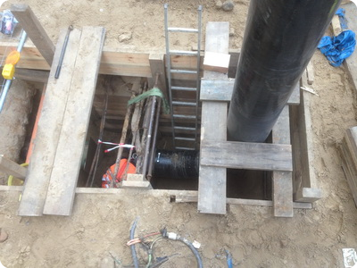 Nach ca. 70 m wird die provisorische Rohrleitung in die vorhandene erdverlegte Leitung angeschlossen